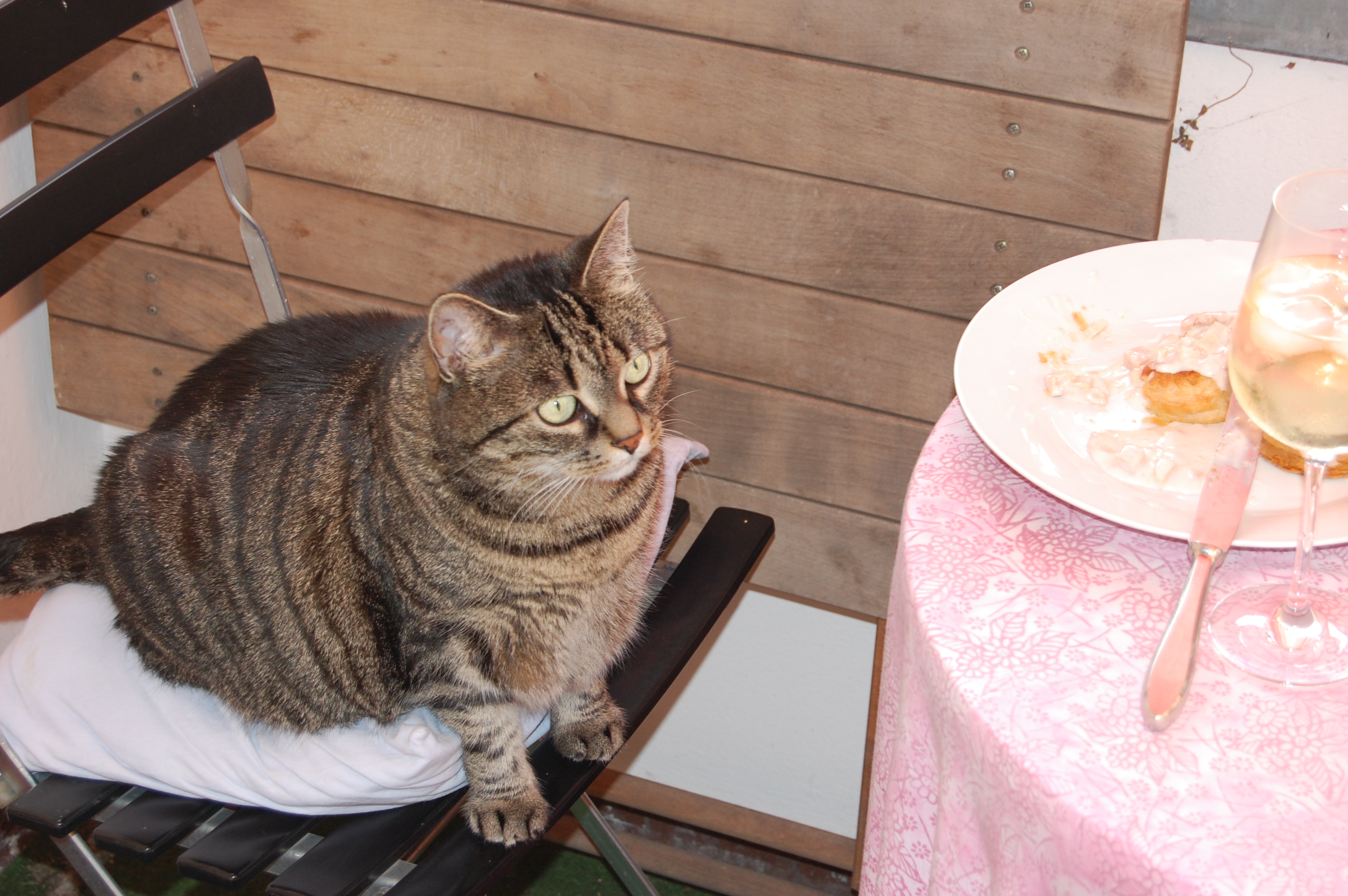 Na, Muschis ist Wassili und Paule CoCo, ist doch klar! 😉 Der Kater auf dem Foto rechts ist so dick, dass man Angst um den Balkon haben muss! *lol*