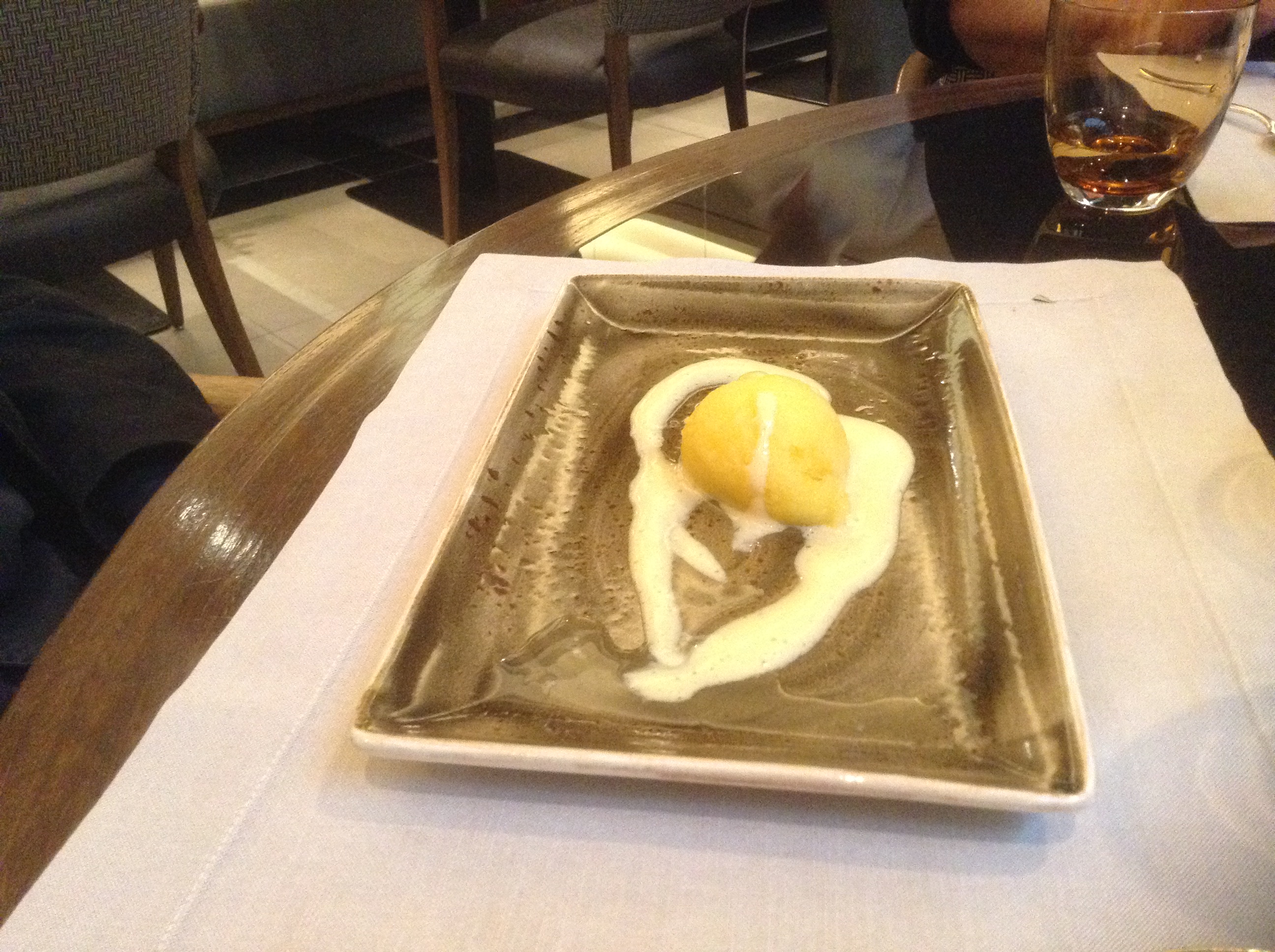 Orangensorbet und Campari Sabayone. Sorbet und Orange passten sehr gut zusammen und die Sabayone war wirklich sehr gut.