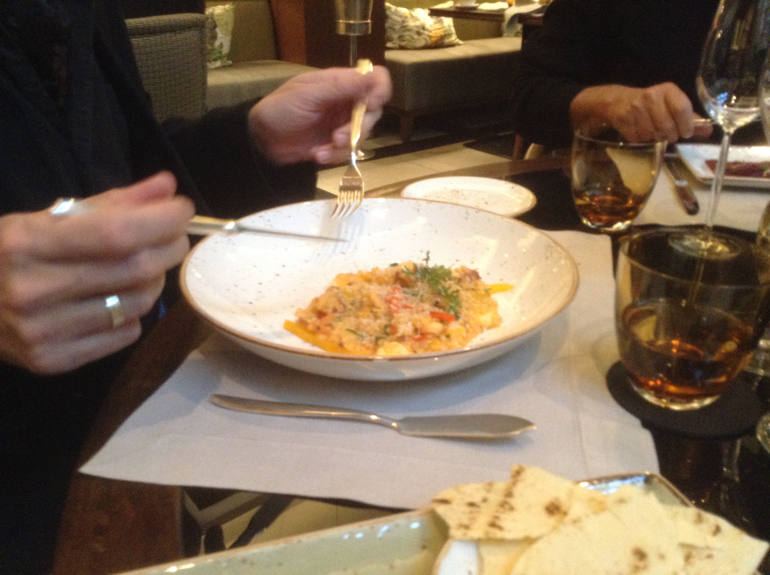 Risotto. Hatte ich mir zwar nicht bestellt aber natürlich probiert. Ich selbst bin ja kein echter Risotto Fan aber ich muss zugeben, sehr schön im Geschmack, so schlotzig wie es sein soll. Prima