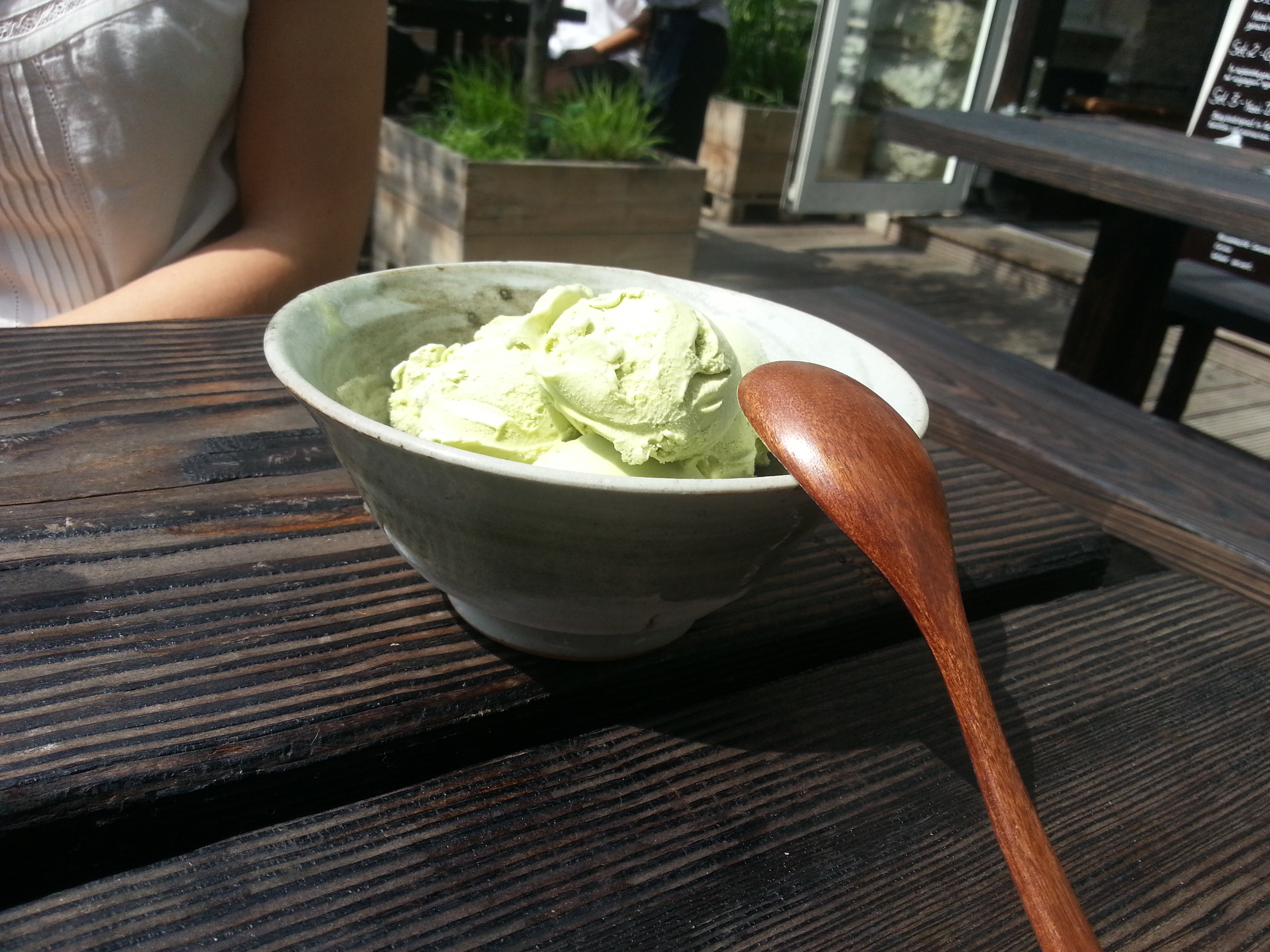 Zum Dessert wurde von Torsten und Papa Claudia das Rharbarber-Sorbet bestellt.