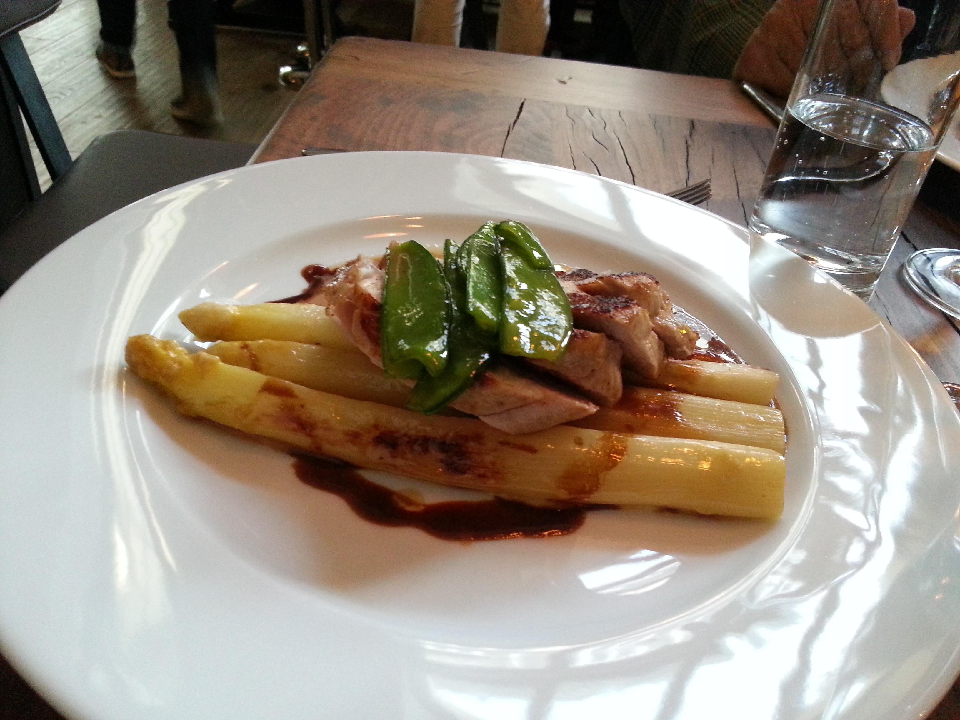 Claudia wählte das Tagesgericht, Kalbscarree mit Spargel, vorneweg Sardinen, Torsten entschied sich für die Rote-Beete mit Salat und Papa von Claudia folgte Thomas seiner Menüwahl.