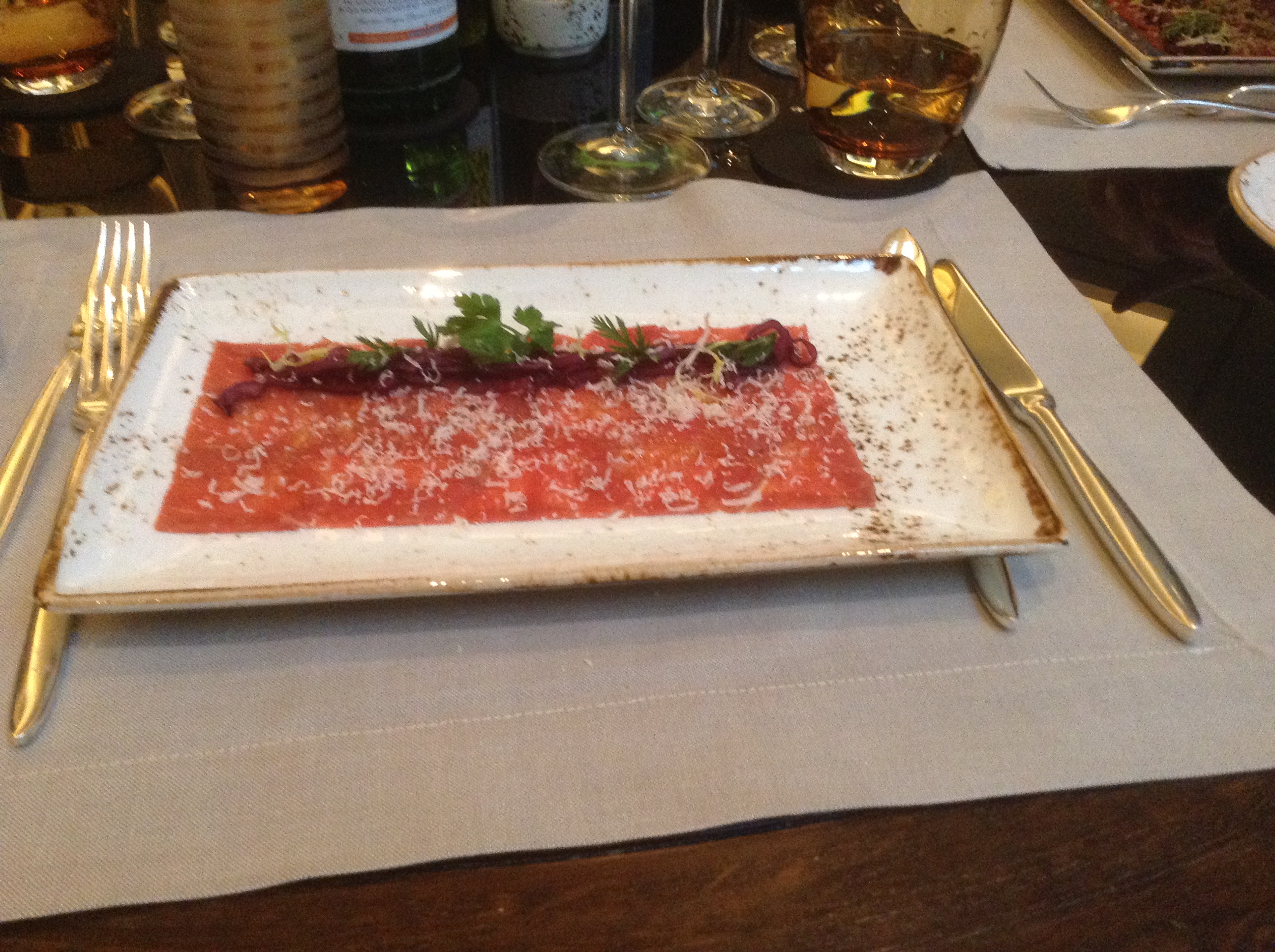 Alles in allem fand ich die Location schon sehr beeindruckend, die Einrichtung scheint gehoben stellenweise imposant, nicht kitschig, kaum modern. Der Service ist nett und schnell. Das von mir gewählte Tageskartenangebot hatte mich aber nicht so überzeugen können, dass ich das zwingende Bedürfnis habe dort nochmals am Abend einzukehren, um dann deutlich tiefer in das Portemonnaie greifen zu dürfen. Da ist in Berlin einfach sehr ursprüngliche vietnamesische und deutlich bessere Küche längst nachgewachsen.